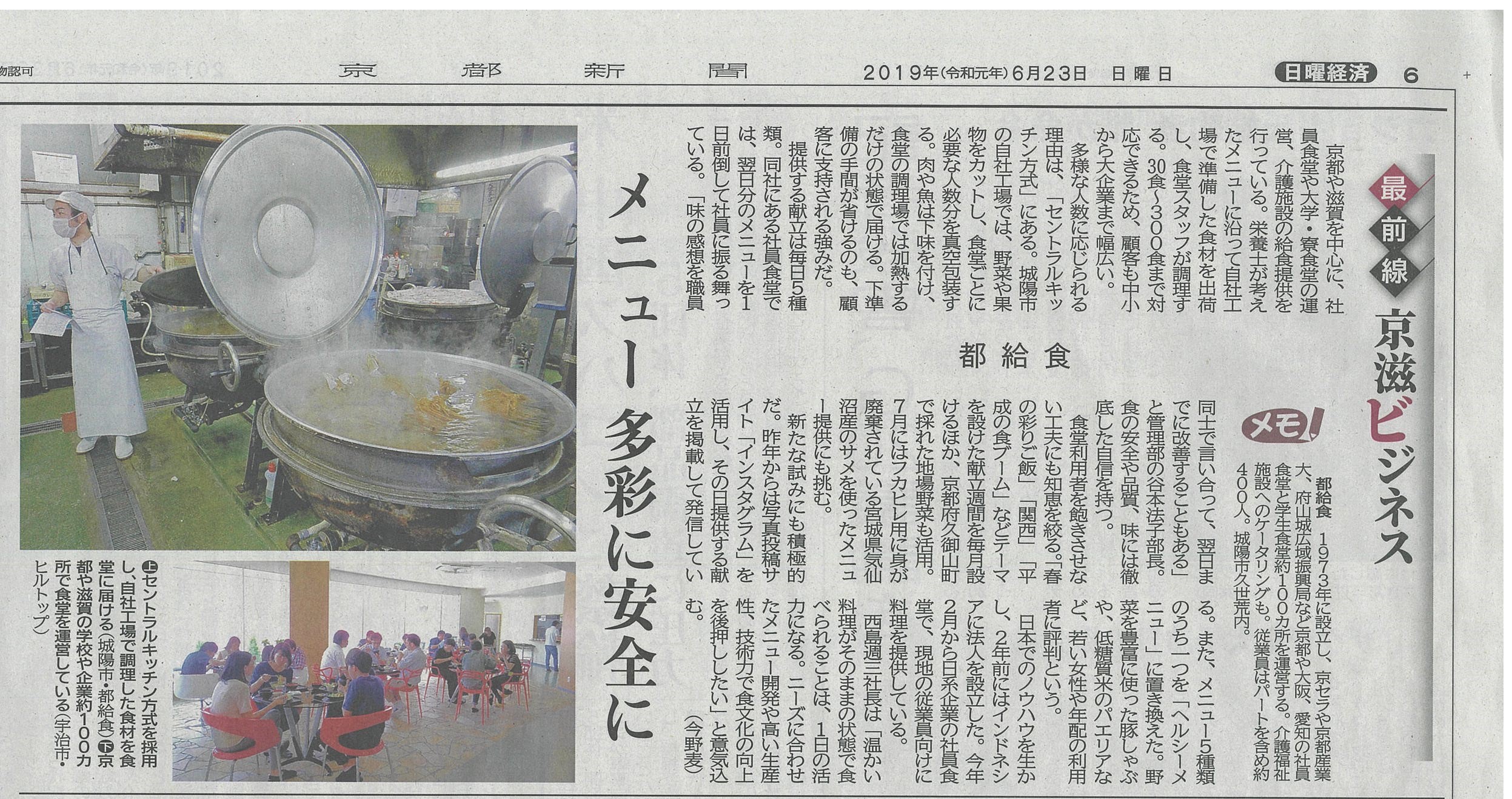 事業所や厚生施設、官公庁の庁舎、研修所における社員食堂及び、大学や高等学校専門学校 の学生食堂を運営。中小企業(30~40人の小規模事業所等)の 社員食堂事業を新事業として展開。