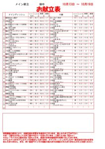 10月13日~10月19日までのお献立