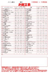 11月24日~11月30日までのお献立