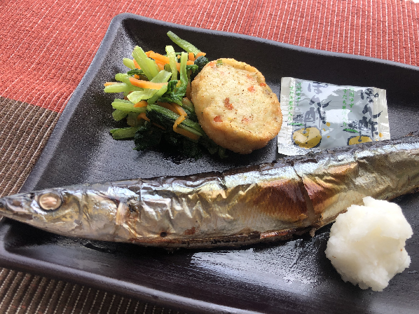 秋にぴったり、さんまの塩焼きです。 血液をさらさらにするEPA、悪玉コレステロールを減らすDHAを多く含んでいます。 また、体内で生成できない必須アミノ酸をバランスよく含んでいるため免疫力低下を防ぎます。