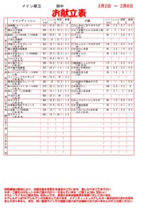 3月2日~3月8日までのお献立